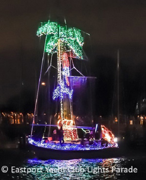 The weather was frightful making Eastport Yacht Clubs Lights Parade a parade in place with almost fifty boats dressed. Click Here to Learn More. We recognize the work and planning that goes into a Lights Parade entry and we appreciate the effort as well as the willingness of crews to brave a very cold night.